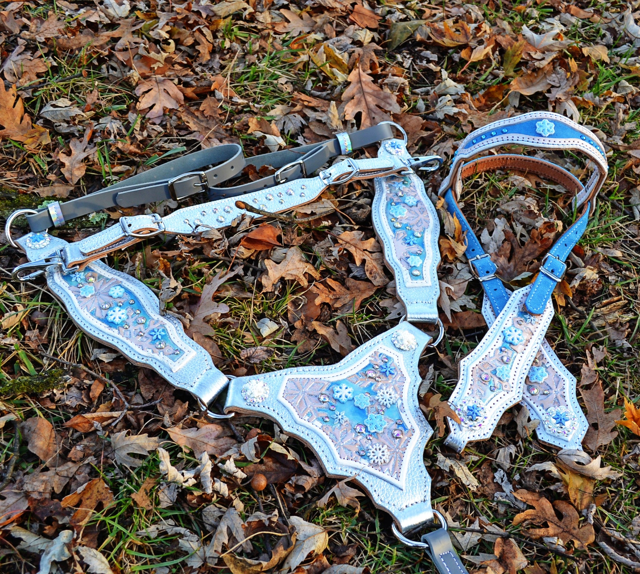 Step into your snow-dusted fairytale with a tack set that looks like it was forged in a winter kingdom. Icy blues, sparkling crystals, and shimmering silver come together in a design worthy of a true Ice Queen and her loyal mount.